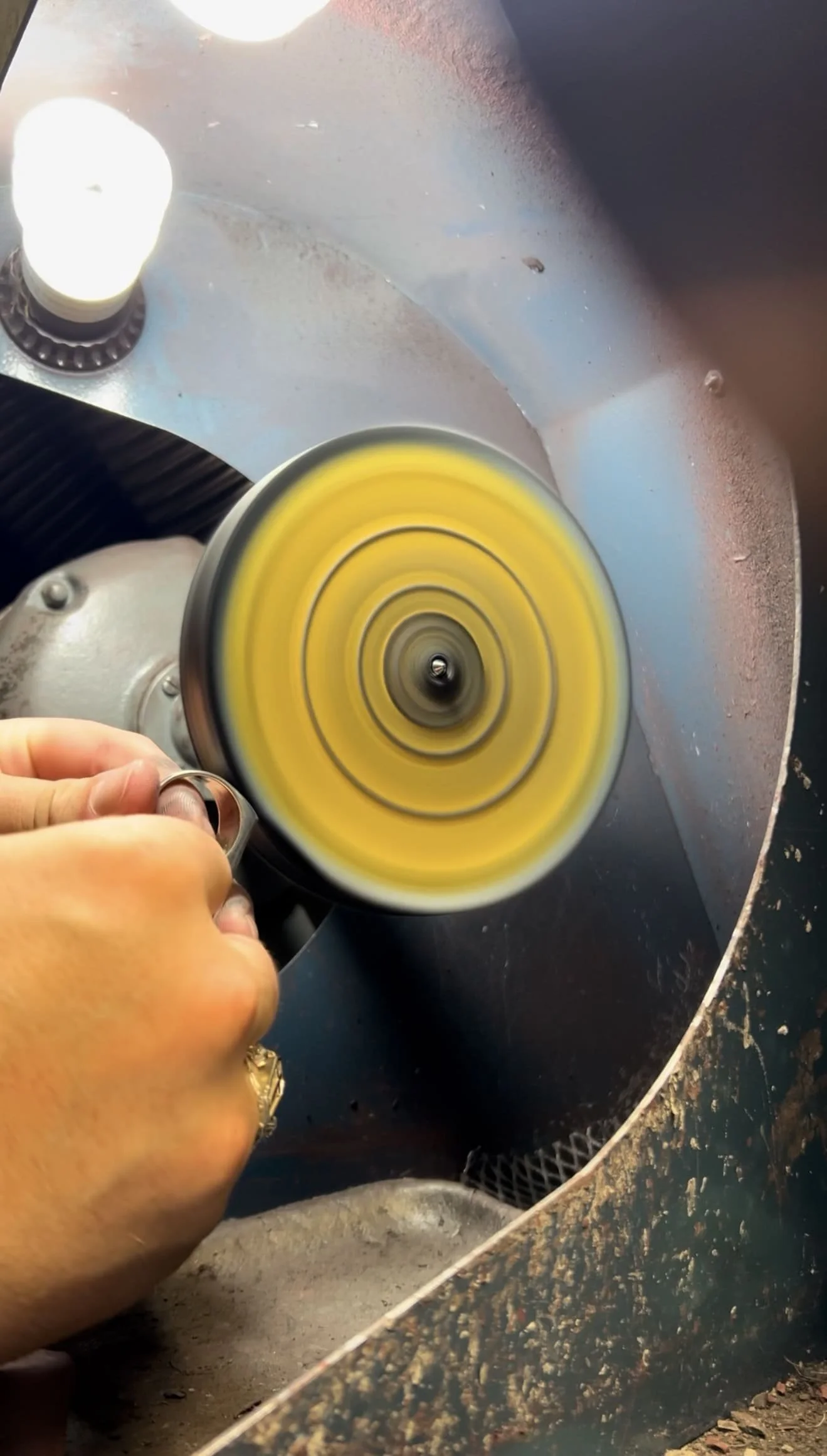 Nous terminons avec un pré-polissage manuel, qui permet d’uniformiser la surface et de préparer parfaitement la bague pour les étapes suivantes : polissage final, gravure ou ajout de pierres. Ce nettoyage approfondi est essentiel pour obtenir un bijou de qualité professionnelle dès le départ.